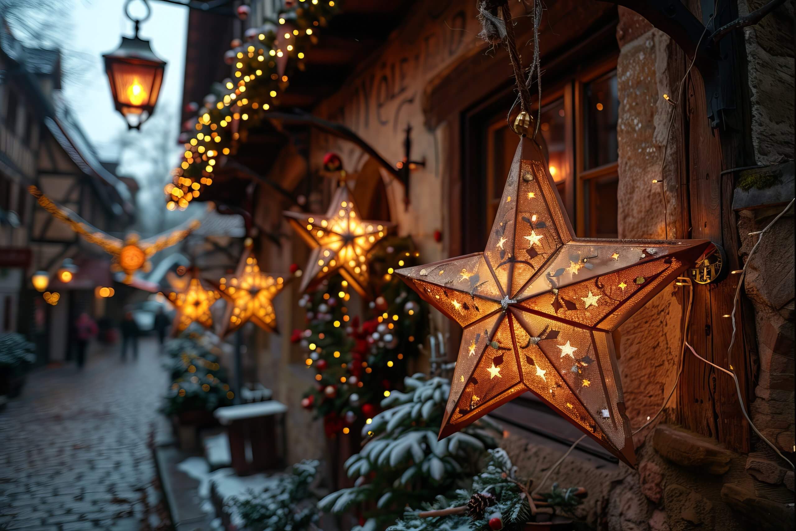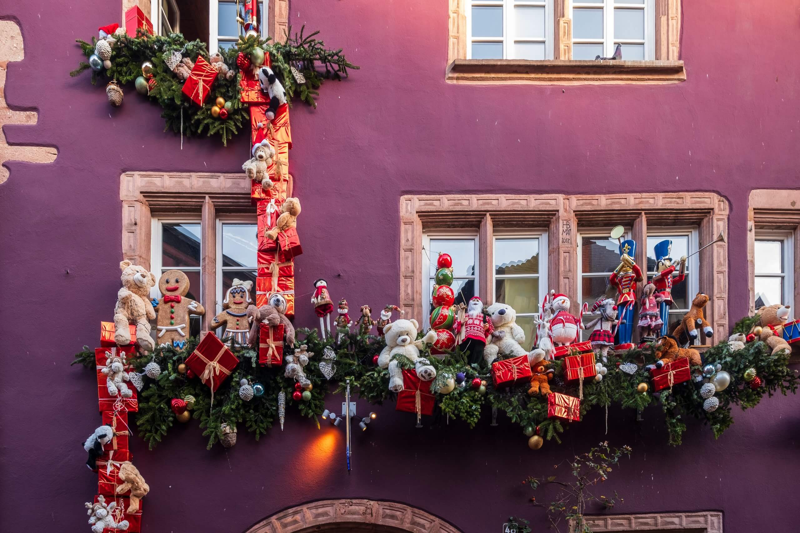 In Alsazia, regione profondamente legata alle tradizioni natalizie, le finestre sono spesso arricchite con biscotti speziati, cuori in stoffa, decorazioni in legno e piccole lanterne: un vero spettacolo di romanticismo.