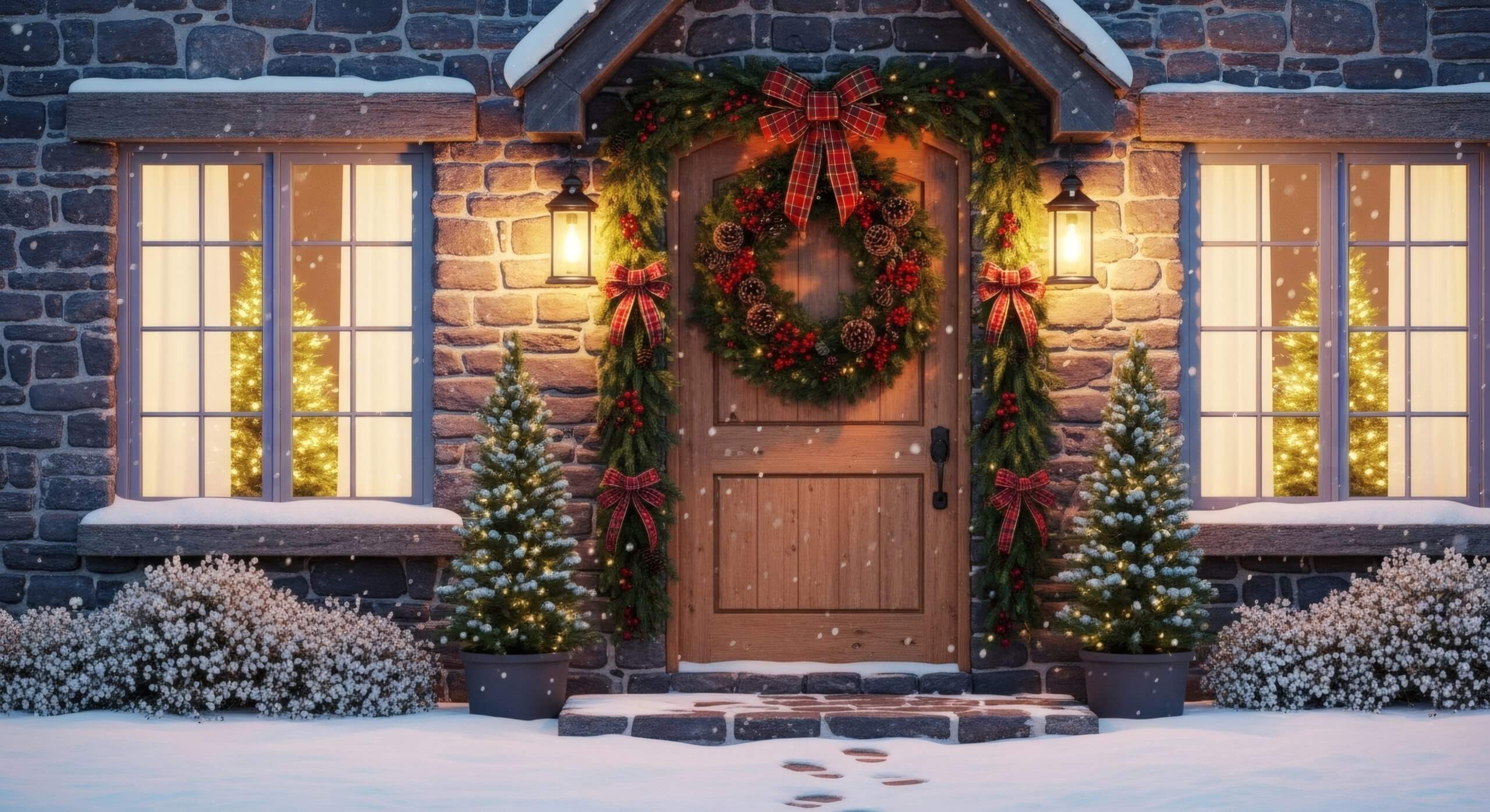 Le porte restano, invece, semplici, spesso decorate con rami di abete o ghirlande naturali.